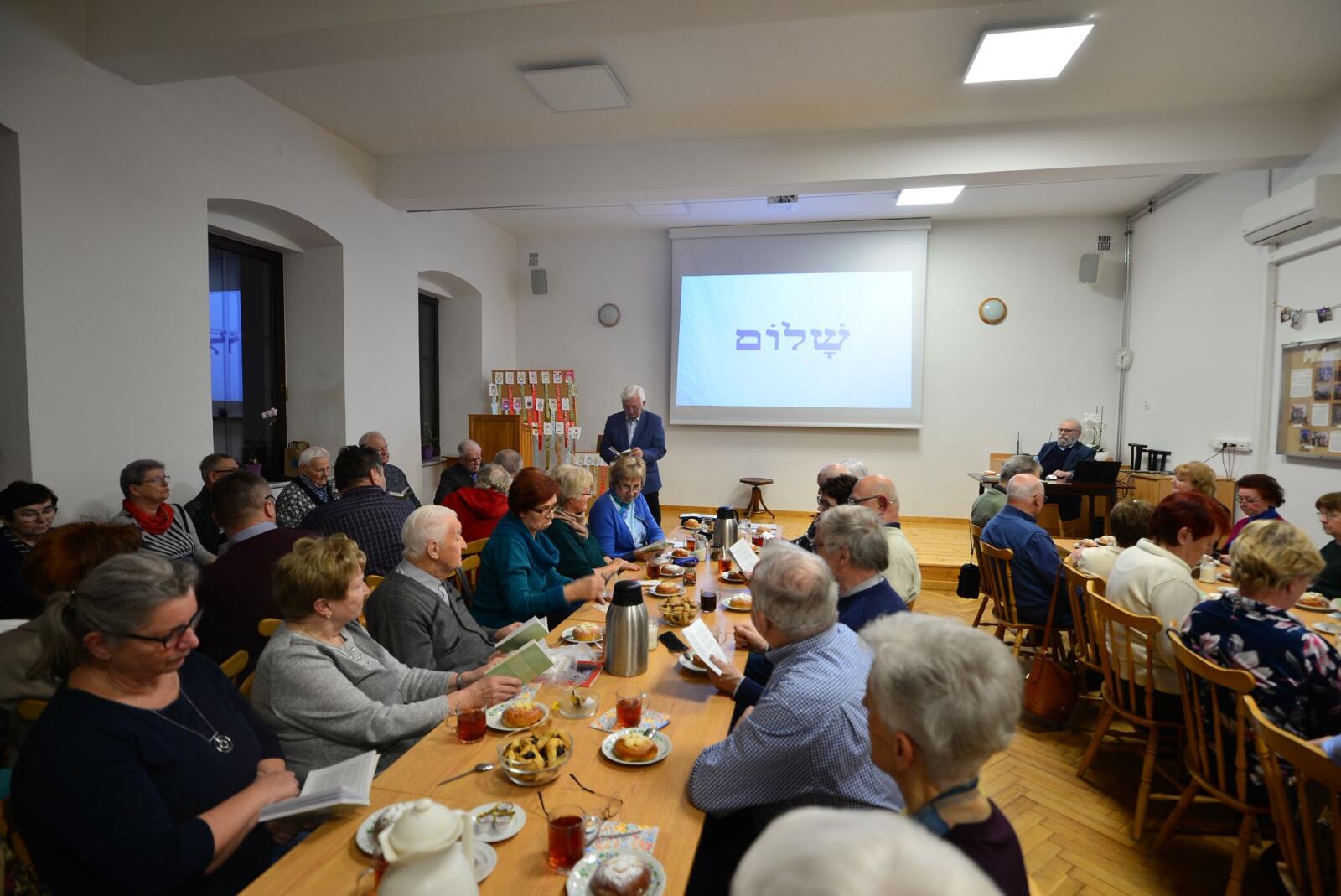Comiesięczne spotkanie Polskiego Towarzystwa Ewangelickiego odbyło się 2 marca 2026 r. i kolejny już raz w tym roku oprócz prelekcji miało charakter uroczysty, swój jubileusz życiowy obchodził Prezes Oddziału Józef Król, obecnie także wiceprezes w Zarządzie Głównym PTEw, a wcześniej długoletni Prezes Oddziału w Jaworzu. Drugą okazją był zbliżający się Dzień Kobiet i z tej okazji oprócz życzeń, członkinie oddziału zostały poczęstowane słodyczami, a wszyscy ciasteczkami HAMANTASZE, które piecze się z okazji ŚWIĘTA PURIM.