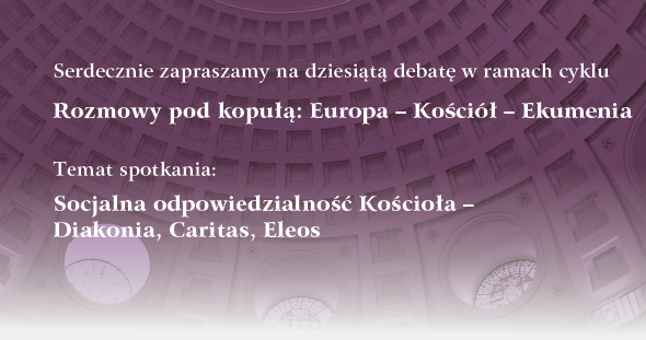 Parafia Ewangelicko-Augsburska Świętej Trójcy w Warszawie ma zaszczyt zaprosić na dziesiątą debatę z cyklu „Rozmowy pod kopułą: Europa – Kościół – Ekumenia”, poświęconą tematowi: „Socjalna odpowiedzialność Kościoła – Diakonia, Caritas, Eleos”.